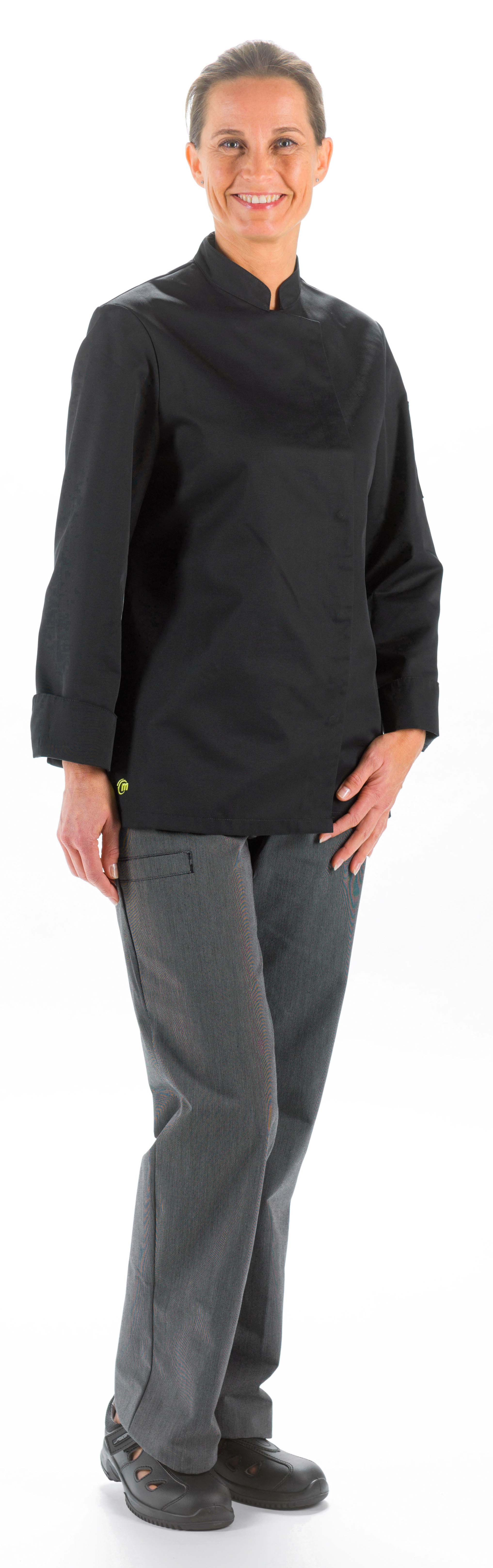 Fermeture par pressions cachées, poche stylo sur la manche gauche
